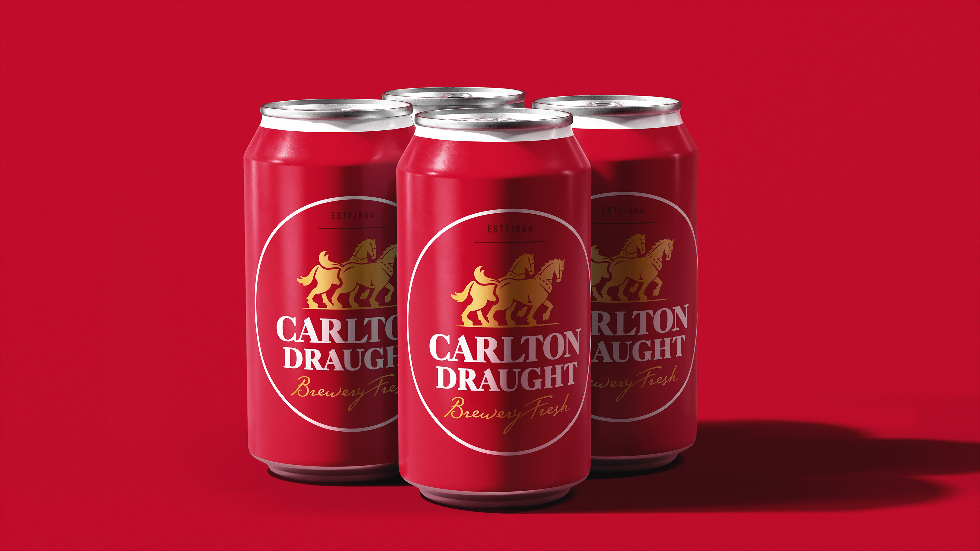 Four 375ml cans lined up in an orderly fashion. Featuring gloss, satin & paper labels, automated light bounce and a removable plastic four-pack holder.